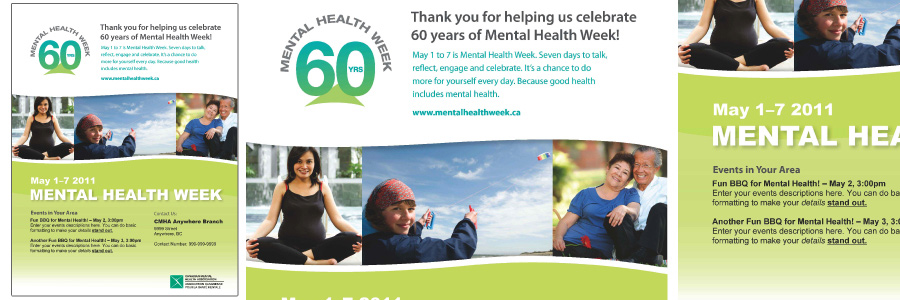 As communications assistant, I created designs for Bottom Line Conference: The Psychologically Safe Workplace, Mental Health Week 2011, and their quarterly mental health and addictions journal Visions.