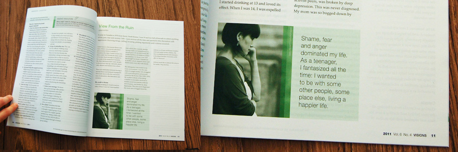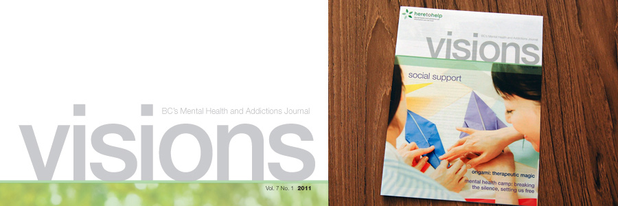 Visions is BC’s quarterly Mental Health and Addictions journal. About 30 pages. In my placement at CMHA, I laid out two editions of Visions.