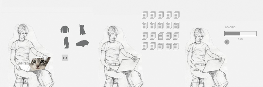Application (2009) is a self portrait to explore common frustrations in an application. The loading bar never loads. The mac startup sound never stops. Only by clicking the sketch of the girl’s laptop does it shut and reopen to reveal the next screen.