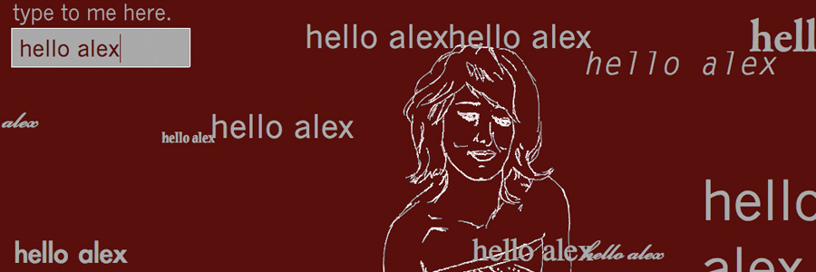 Shoe Application (2009) is an interactive flash where the viewer can type a message to the girl on the screen. The unexpected outcome brings a sense of insecurity to the user.