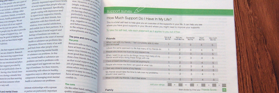 Inside spread showing the survey design in Visions: Social Support issue.