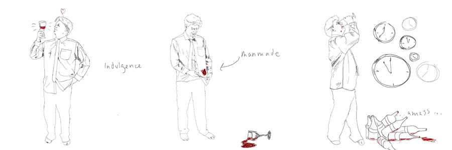 Excess (2009) A narrative series of tablet drawings printed on letter sized paper, revealing its original digital medium. Four drawings were composed regarding four open themes: Mega, Indulgence, Waste, Man-made and Amass.